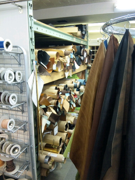 まず、エナメル革を探しに浅草へ行き革問屋で本革を大量に購入しました